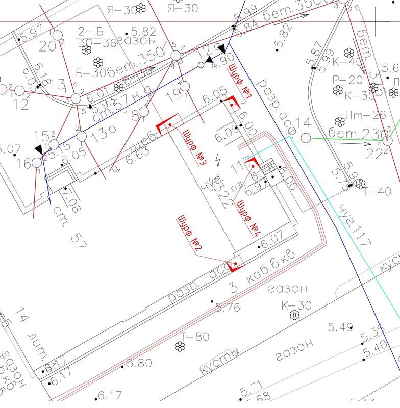 Нанесение на топографическую съемку расположения шурфов, необходимо для того, чтобы исключить при проходке шурфов попадания в существующие инженерные сети, а именно в электрические кабеля, канализацию, водоснабжения и т.п.