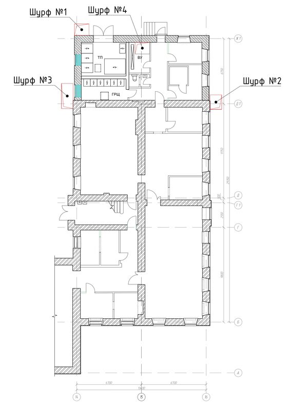 Проходку шурфов наносят не только на топографическую съемку, но и на план первого этажа или подвала. Нанесение на план, необходимо не только при разработке программы работ (проекта производства работ), но и для ориентации инженеров или техников непосредственно в здании.