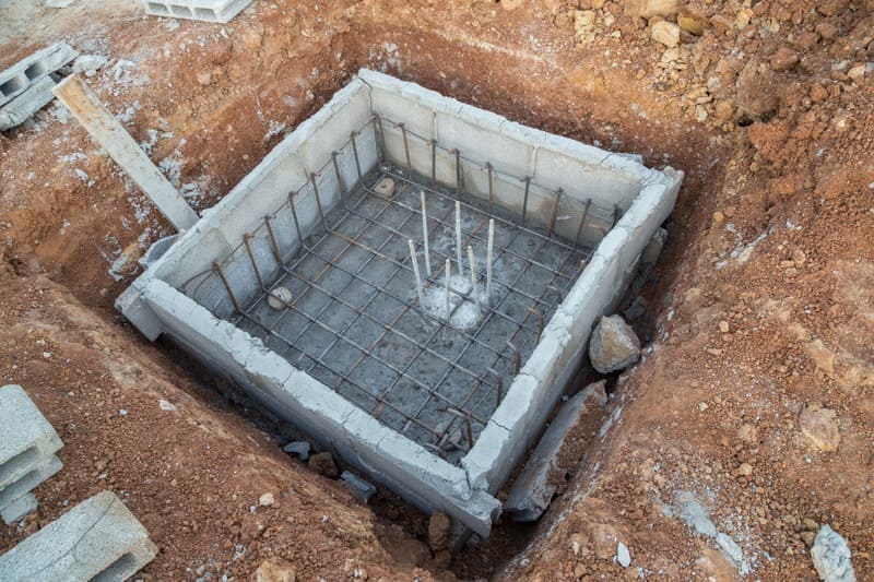 - Железобетонное основание или опорная подушка. Монолитная, круглой, прямоугольной или квадратной формы. Минимальная площадь подушки – 12 квадратных метров. Обязательно покрывается защитным слоем для гидроизоляции.