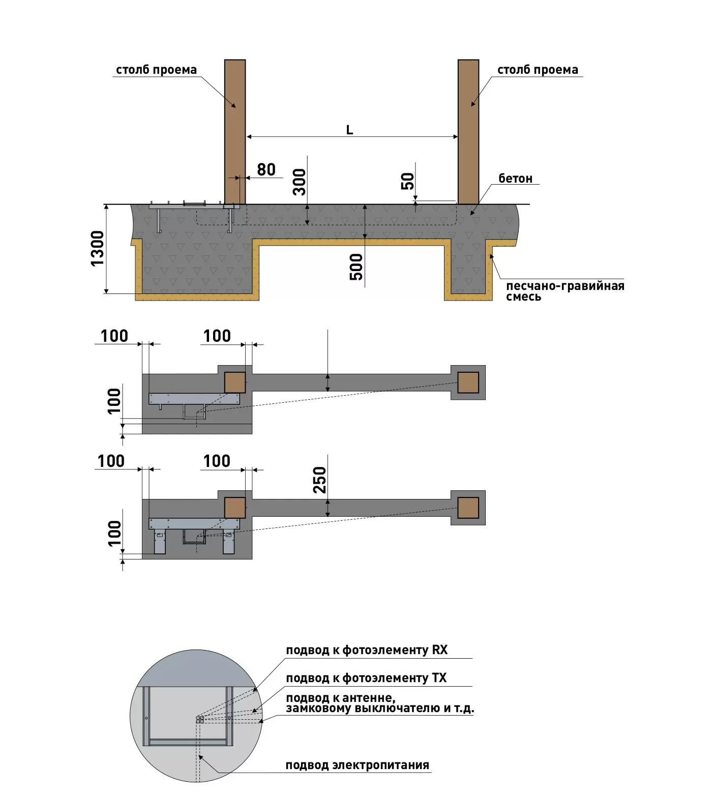 Фундамент делает конструкцию удобной для использования, полностью раскрывая ее возможности. Если он установлен неправильно, то могут возникнуть проблемы в работе всей конструкции, а так же автоматики. Поэтому перед работой необходимо точно рассчитать величину, глубину и расположение элементов. Для нахождения оптимального решения пригодится схема или чертеж.