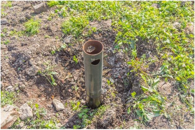 Допускается установка винтовых свай в каменистую почву, если залегание пород находиться на глубине до 0,5 метров. В данном случае выполняется бурение скважины (приямка). Ее диаметр немного меньше размера ствола. Это позволяет более просто ввинтить лопасти в почву.