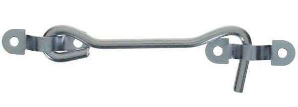 Когда створка открывается на достаточный угол, петля уходит за пределы крюка, и он, опускаясь, захватывает петлю, не позволяя створке закрываться. Чтобы освободить створку, необходимо нажать ногой на «кнопку», что поднимет крючок и откроет защелку.